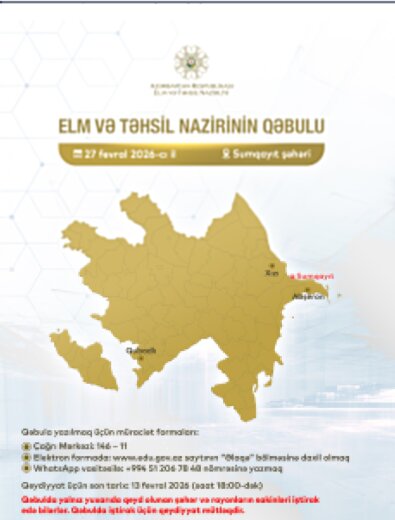 Adları çəkilən şəhər və rayonların sakinləri fevralın 13-dək (saat 18:00-dək) Elm və Təhsil Nazirliyinin Çağrı Mərkəzinin 146 – 11 nömrəli telefonuna (yalnız iş günləri və saatları ərzində) zəng etməklə qəbula yazıla bilərlər.