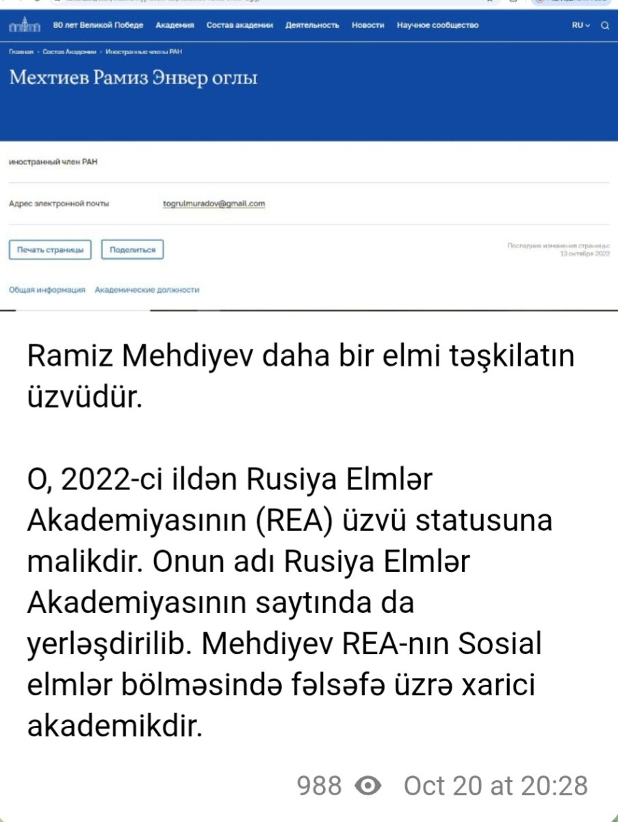 Ramiz Mehdiyev Rusiyada bu qurumun üzvüymüş - Fakt
