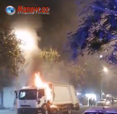 Sumqayıtda zibil daşıyan maşın yandı -foto/ video