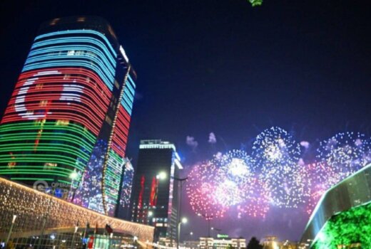 Daşkənddə Azərbaycan bayrağı proyeksiya olundu - Şəkil