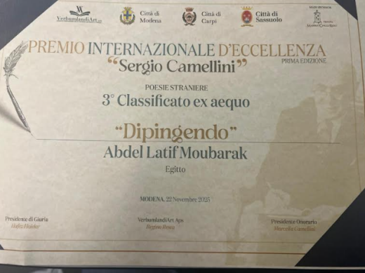 Misirli Şair Əbdül Lətif Mubarak İtaliyada "Sergio Camellini" Beynəlxalq Poeziya Mükafatına layiq görülübManevr.az xəbər verir ki, bu günlərdə İtaliyanın Modena şəhəri, xüsusən də Hərbi Akademiyasının Hersoq Sarayındakı Fəxri Zal, mədəni tədbirə səhnə oldu. Bu söz bayramında misirli şair Əbdül Sergio Camellini Beynəlxalq Poeziya Mükafatına layiq görülüb.