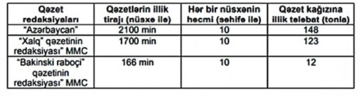 Qərara əsasən, dövlət sifarişlərinin yerinə yetirilməsi üçün "Azərbaycan" qəzeti redaksiyasına, "Xalq" qəzetinin redaksiyası" Məhdud Məsuliyyətli Cəmiyyətinə və "Bakinski raboçi" qəzetinin redaksiyası" Məhdud Məsuliyyətli Cəmiyyətinə dövlət büdcəsinin vəsaiti hesabına alınacaq qəzet kağızının norması aşağıdakı kimidir: