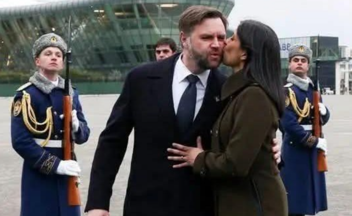 ABŞ-nin ikinci xanımı Uşa Vens Bakıda, Heydər Əliyev Beynəlxalq Hava Limanına çatan avtomobil karvanına doğru gedərkən həyat yoldaşını öpüb.