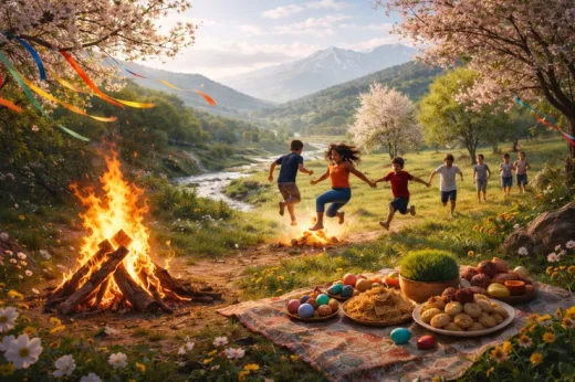 axşam tonqal qalamaq və onun üzərindən tullanaraq köhnə ilin çətinliklərini geridə qoymaq,